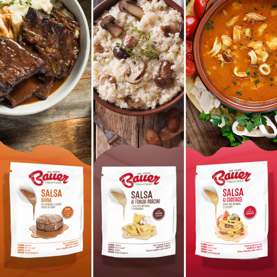 - Le nuove Salse Bauer sono pratiche e veloci da preparare, perfette per valorizzare ogni tua ricetta.