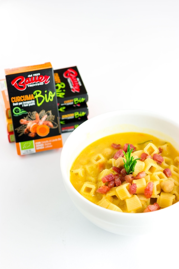 Mirco del blog “Oggi Cucina Mirco” propone uno stuzzicante primo piatto a base di ceci e pancetta, utilizzando il Dado Curcuma BIO di Bauer. Che aspettate a provarlo?;)